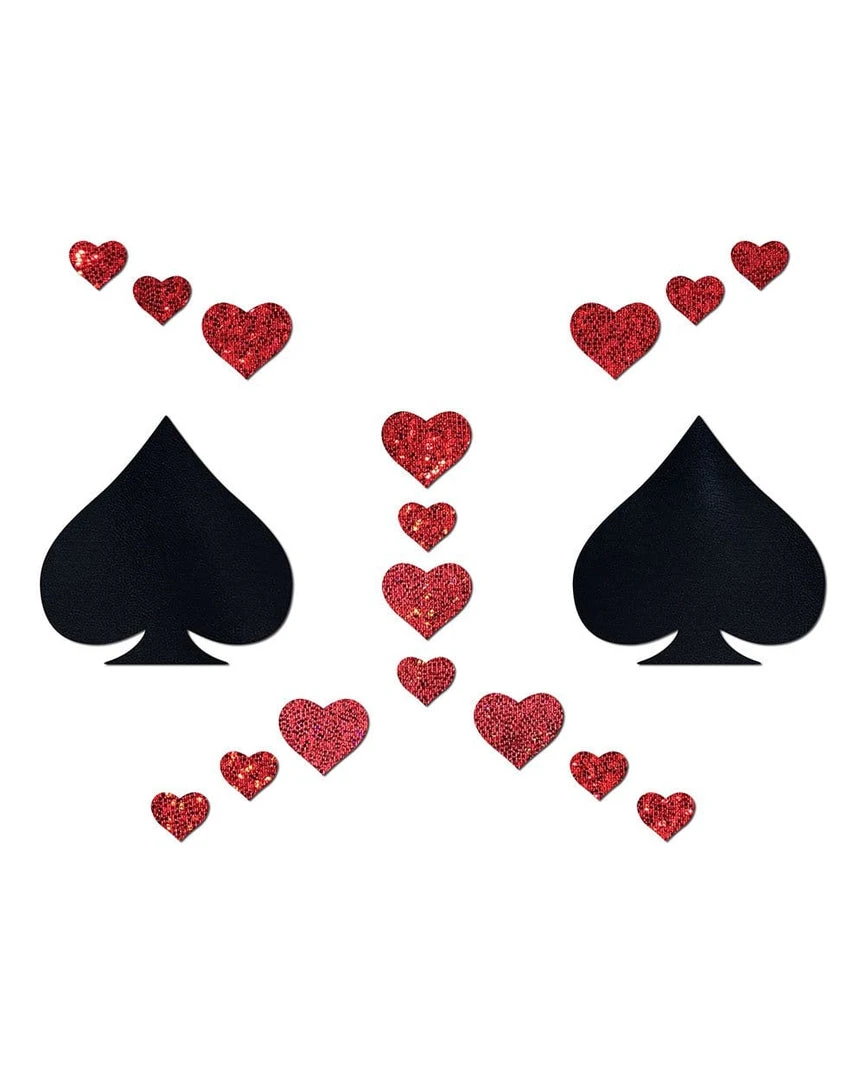 You’re always got tricks up your sleeve in our Pastease Spade & Heart Pasties. Slay in these black spade pasties that include tons of red heart stickers that’ll make your heart flutter.