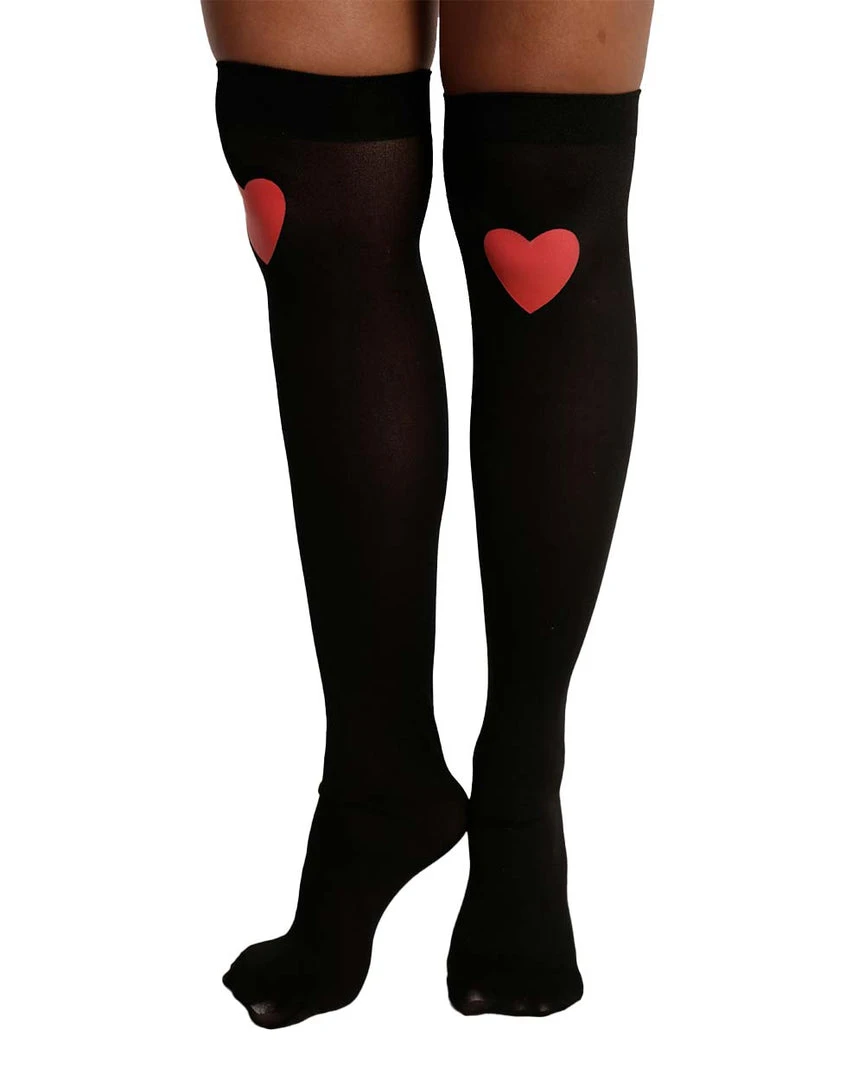 Kick off ur rave season with our Heart Skips a Beat Thigh-High Socks. Available in two designs, you can choose from a black pair with a red heart accent or a white pair with tiny hearts all over them.