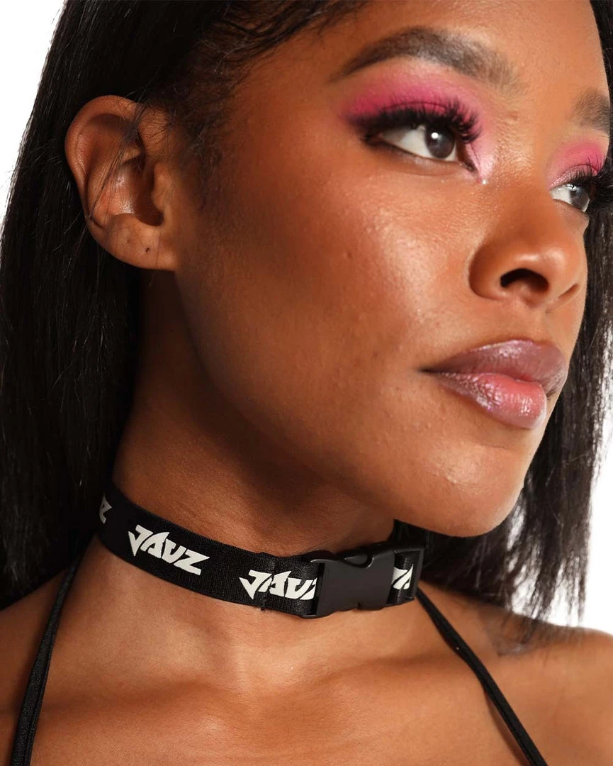 Black silky fabric with the Jauz logo, the Jauz x iHR Print Speed Clasp Choker is absolutely divine. It’s adjustable and features a speed clasp closure for that extra touch of edginess to your fit.