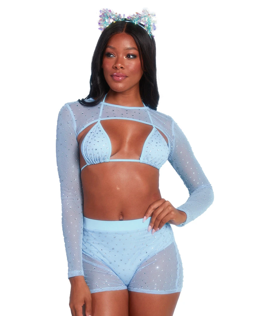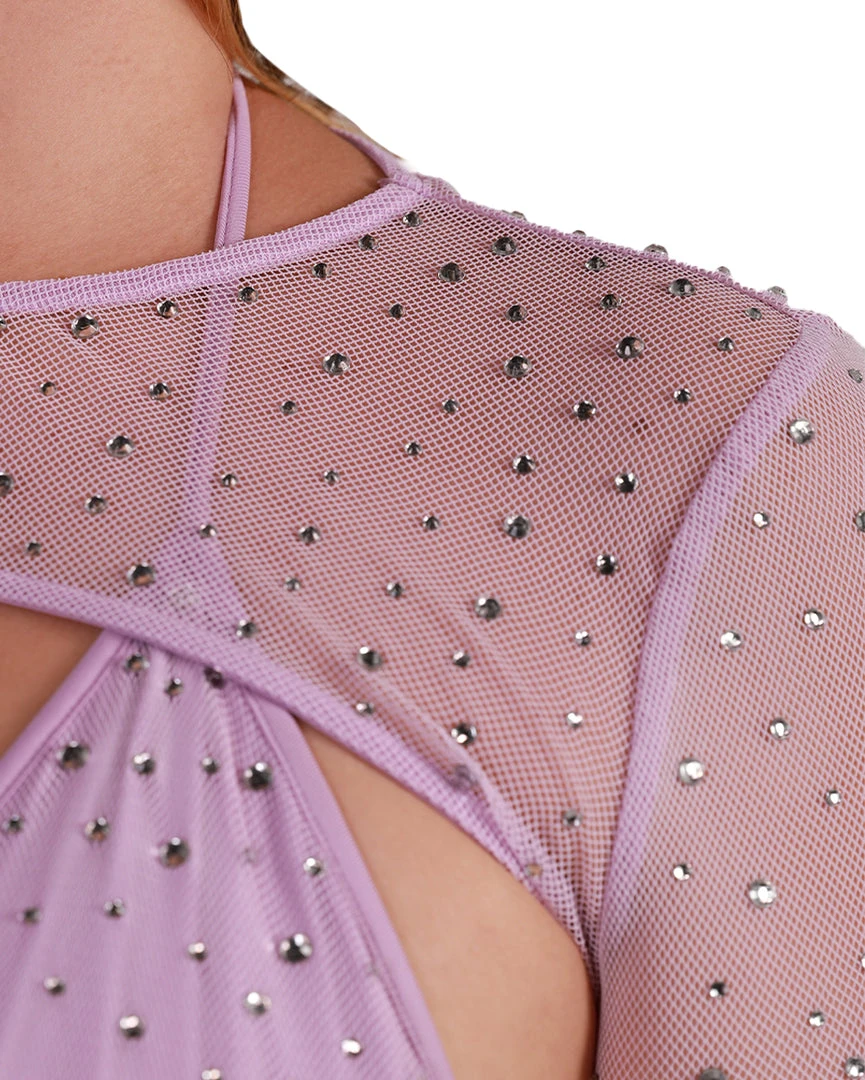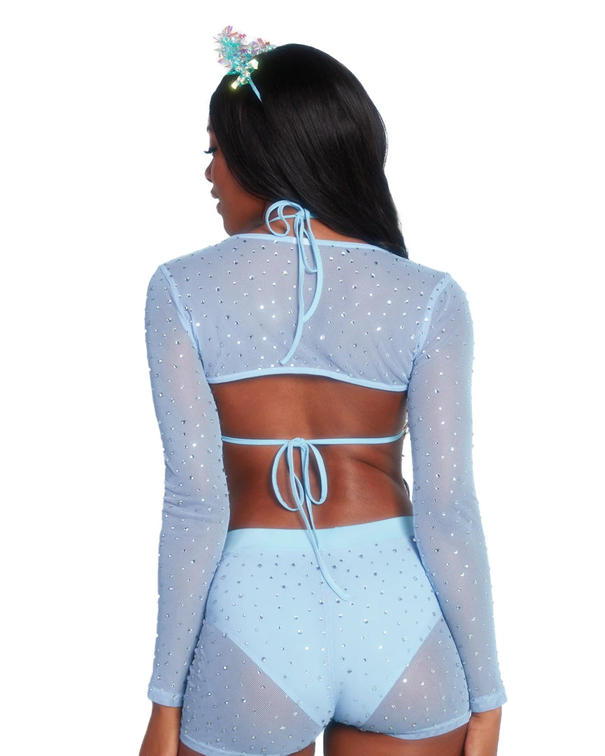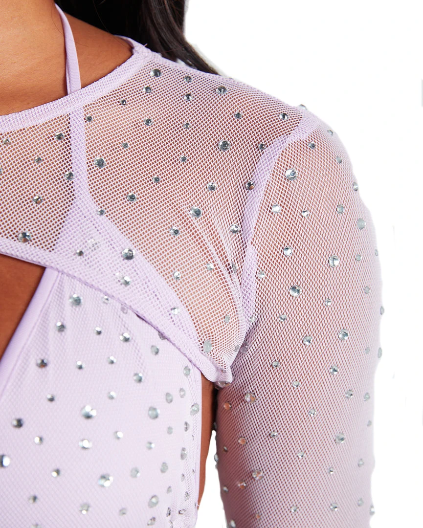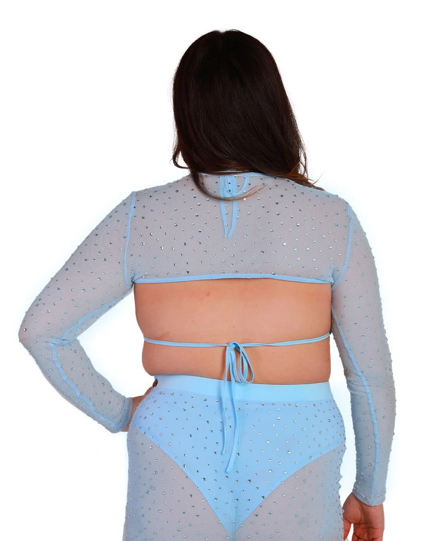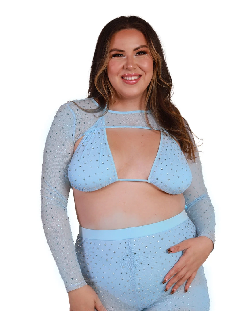 Our Pastel Paradise Ultra Crop Top is everything u need for a day full of glam. This mesh crop top comes in baby blue and lavender and is bedazzled with shimmering rhinestones all over.Â