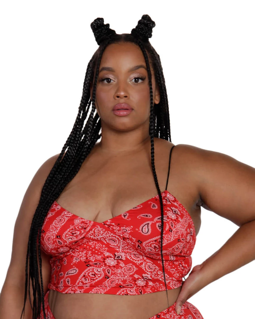 It’s all about the pretty-in-bohemian feels with the Paisley BB Cami Top. This red tank top features skinny straps and the iconic print that was a staple in the 70s.