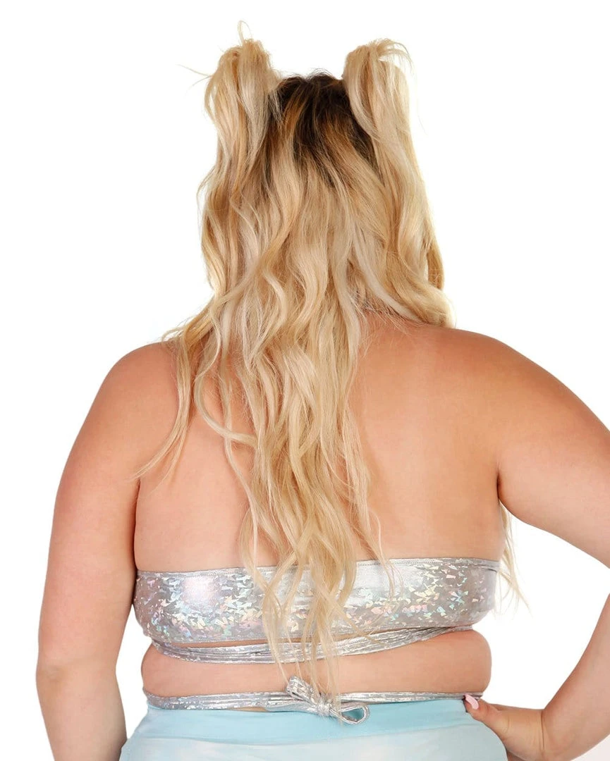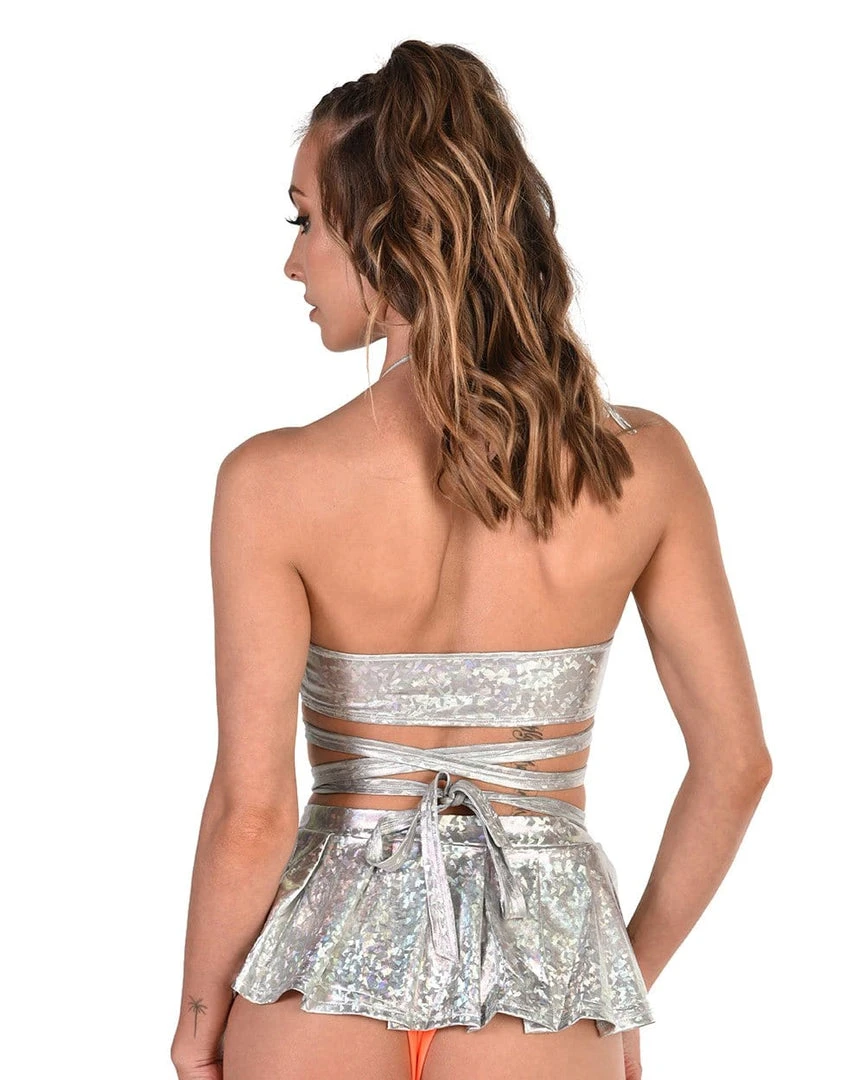 Shine brighter than ever before in our Shinin’ In Silver Holographic Wrap Around Crop Top. With gleaming, silver colors radiating with every move you make, this holographic halter top has an adjustable fit with a sassy wrap around detail.
