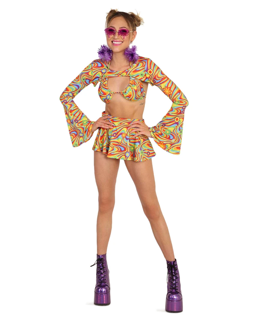 Blossom and bloom in our Breathe Me In Floral Skirt. This skirt features a high-waisted cut, flowy design, and a trippy print combined with the cute flowers that give major happy vibes.