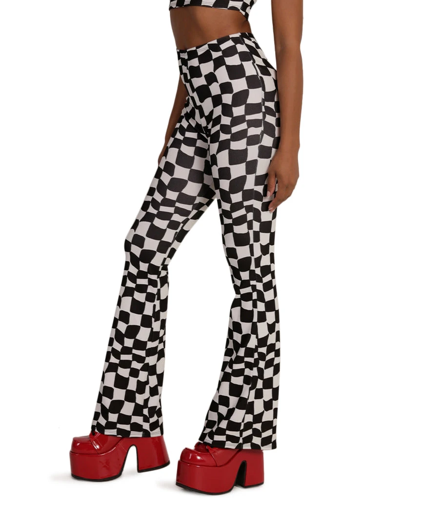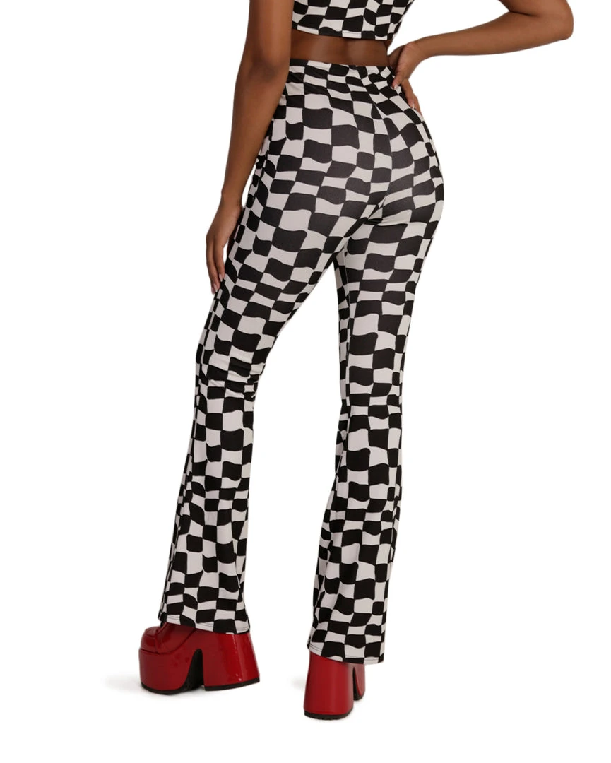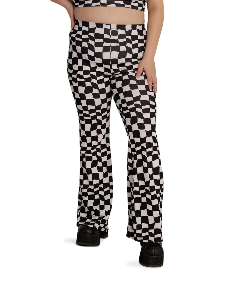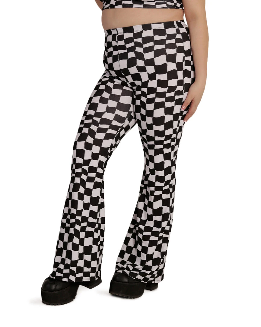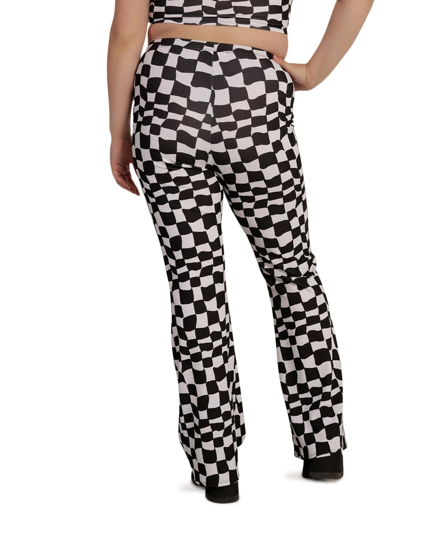 The Ahead of the Game Checkered Bell Bottoms will have u reliving a perfect 70s moment. They feature a high-waisted cut, a checkered print all over, and a flared design.