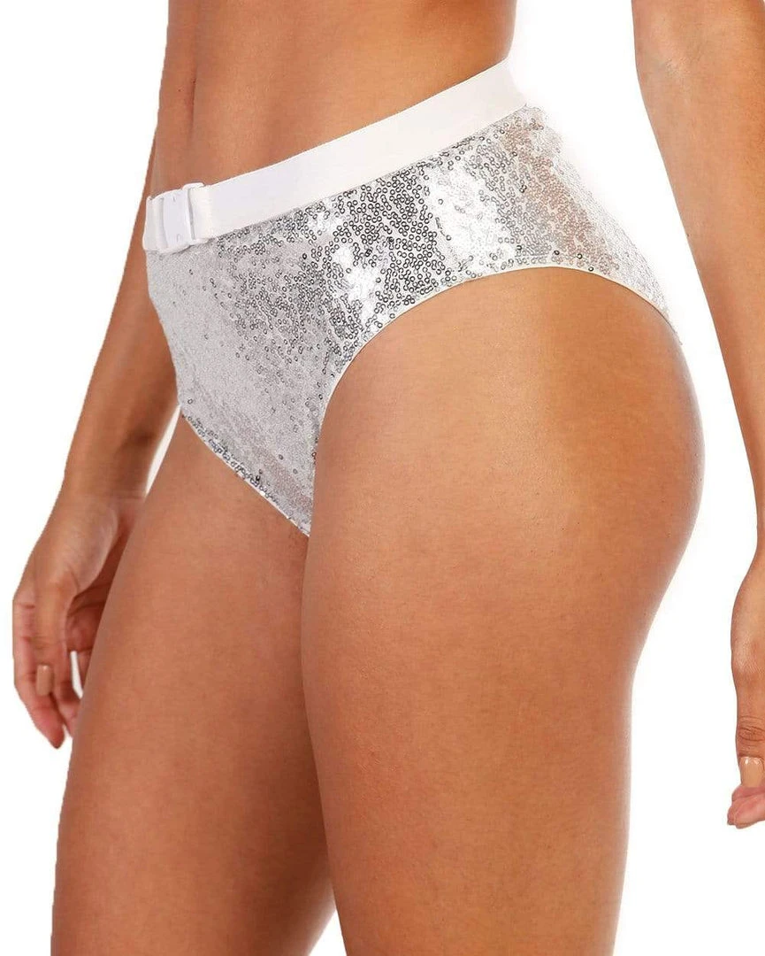 Leave โem in the wake of your magic in our Cosmic Crystal High Waisted Bottoms. These ultra sparkly rave booty shorts are full of silver sequin with a flattering white elastic waistband, a buckle closure with a moderately cheeky fit.