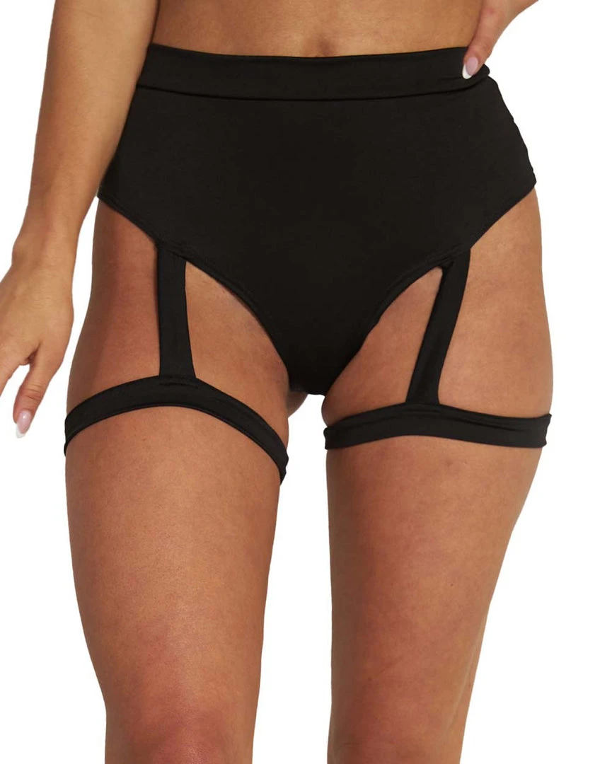 Work it with our Showdown Harness Thong Booty Shorts 2.0, girl. These bottoms have a high waistband, high-leg cut, ultra cheeky coverage, and an attached leg harness.