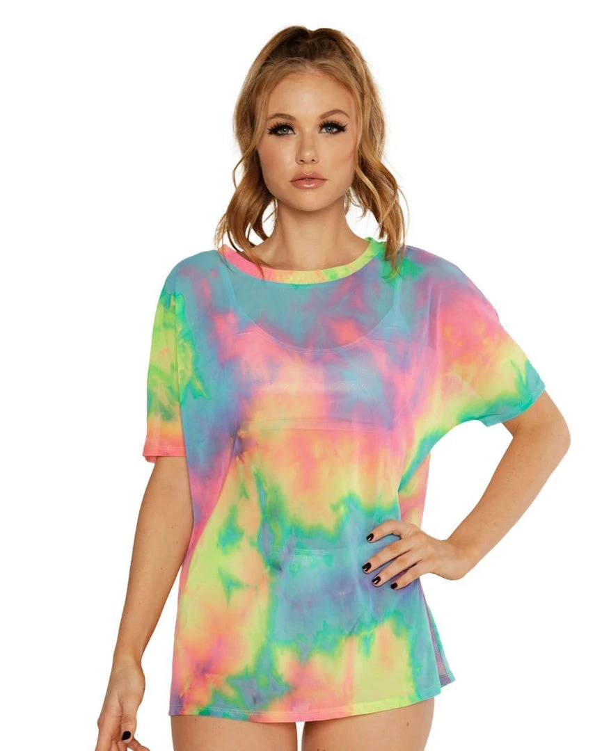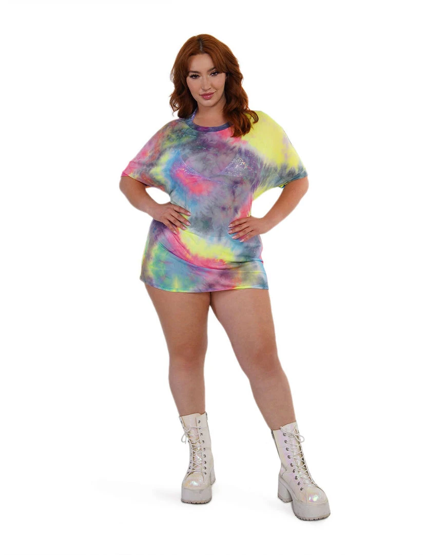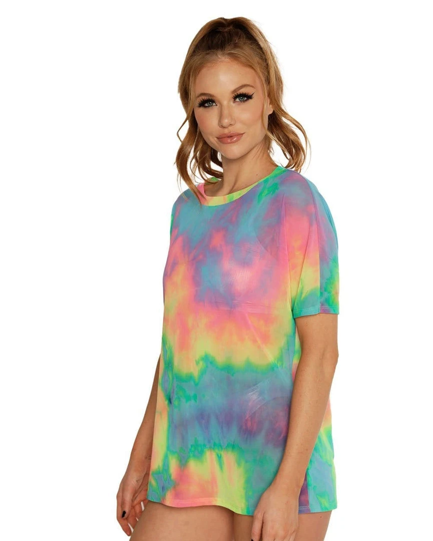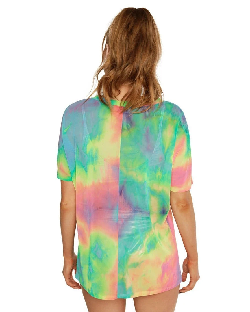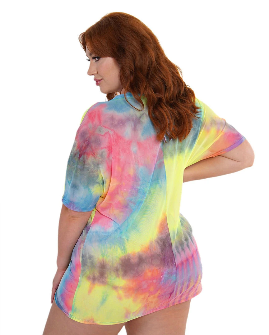 You’ll be ready to conquer the dance floor in our Tie-Dye Cutie Oversized Mesh Tee. This oversized see-through top has a cute AF tie-dye print so that you radiate good vibes all night.