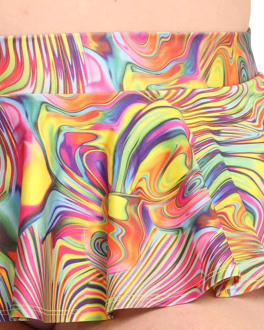 Surf in this multicolored wave that is our Rainbow Burst Skater Skirt. It’s made of lightweight material so it sways beautifully to ur every move. Plus, it has a high-waist cut, elastic waistband, and a trippy print all over.Â