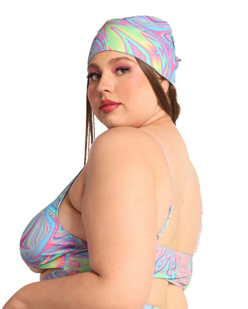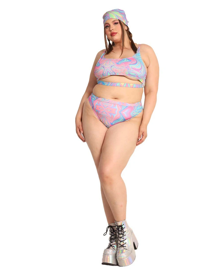 Take a trippy trip with our Recycled Fabric Melted Marble Underboob Crop Top. This top has a square neckline, underboob cutout, and a stunning multicolored marble print.ย