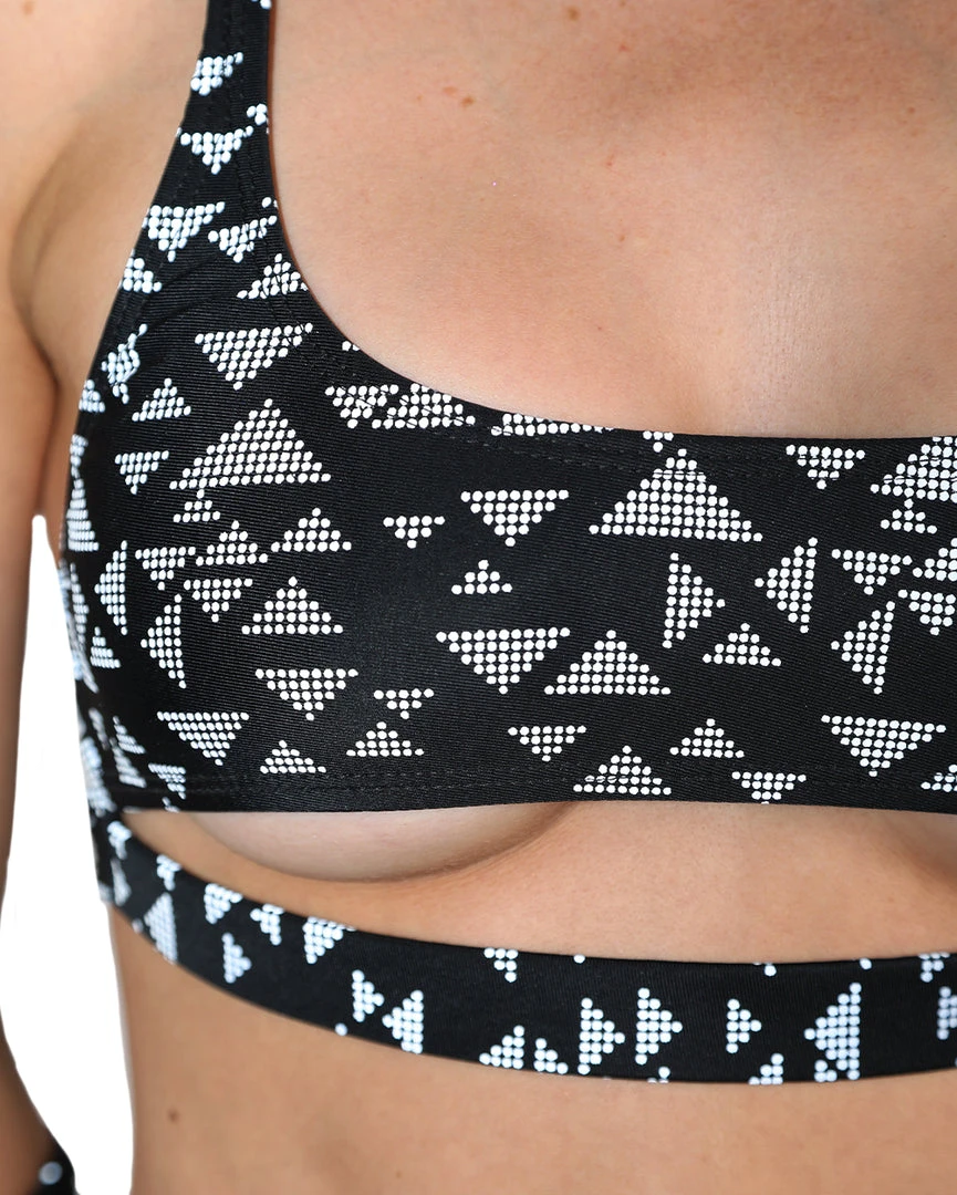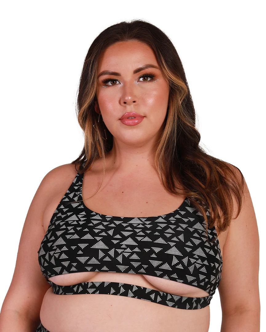 You’re an 80s disco queen in our Retro Freak Reflective Underboob Top. Featuring a retro-inspired print that illuminates under the lights, this crop top with skinny straps is guaranteed to make u feel and look good.