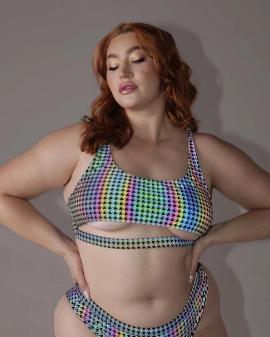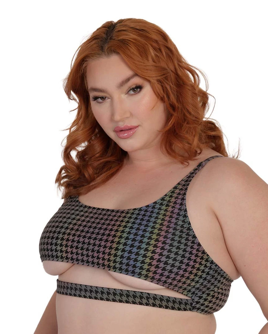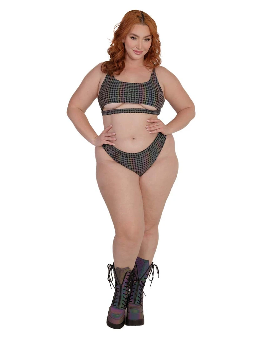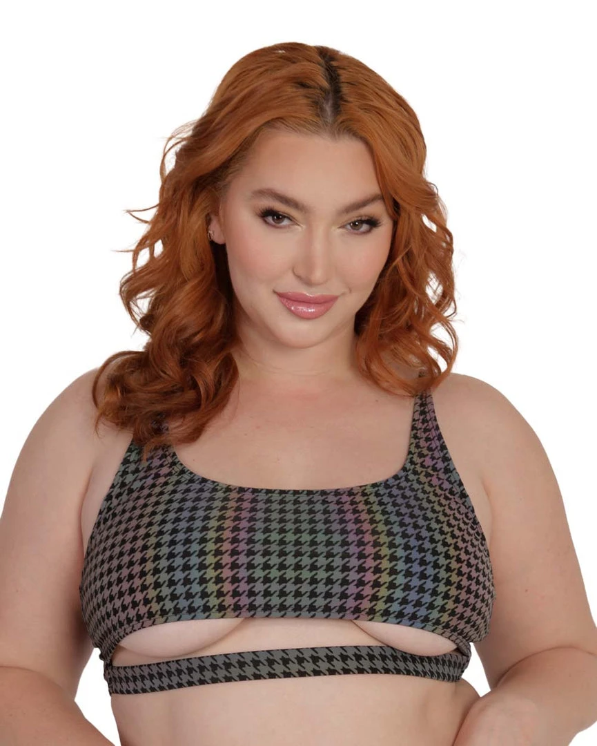 Take a walk down memory lane and complete ur next rave drip with the Groovy BB Reflective Underboob Top. This crop top features a scoop neckline, thin straps, an underboob cutout, and a wavy pattern that’s guaranteed toย get u groovy.