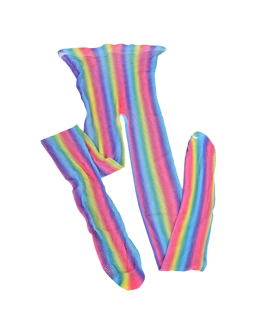 Fulfill all ur cyber rave girl dreams with the Cyber Sunset Rainbow Stockings. The rainbow sheen, the subtle blends of colors, and the delicate fishnet material will have u looking like a prismatic warrior.