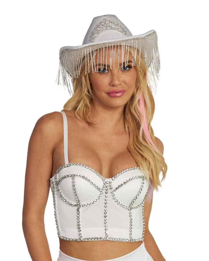 Ur music festival look is finally sorted with the Better Believe It Rhinestone Tank Top. Ths cropped top has thin straps, corset boning, and sparkly rhinestones all over the bodice.