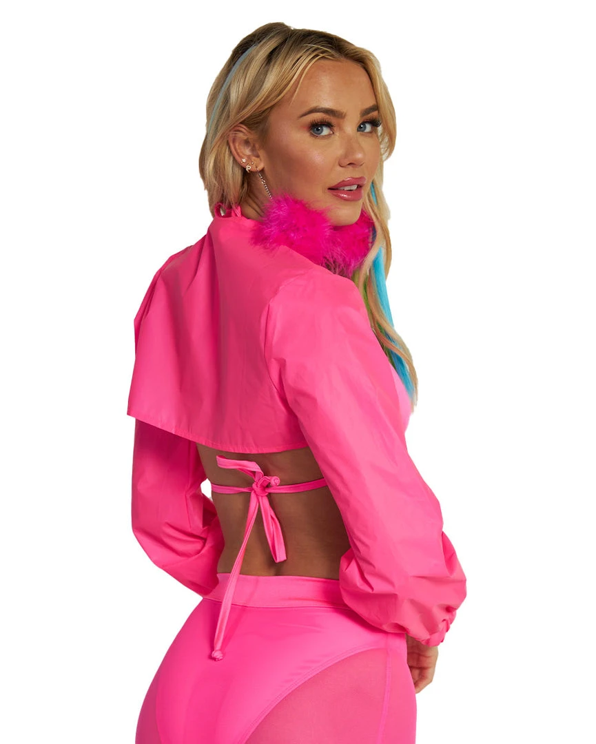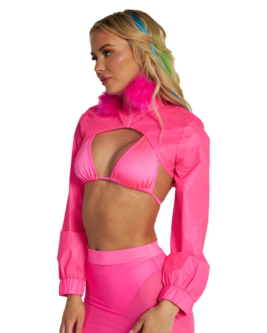 Servin’ Pink Looks Reflective Ultra Crop Top is such a suurv. The show-stealing shade of hot pink coupled with this top’s cuffed hems and zipper closure is a sight to behold. Pair it with equally bright white platforms and you’re ready to slay.Â