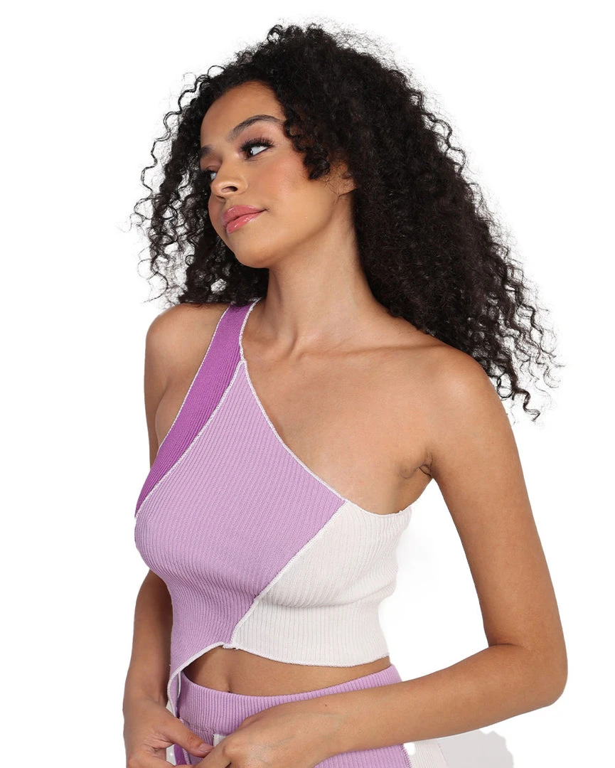 Feel cute and quirky with our Stay Fab Cropped Tank Top. This one-shoulder top features an asymmetrical hem, classic ribbed texture, and ultra-soft feel. Its tri-color hues: white, lavender, and purple, are perfect for chill days.