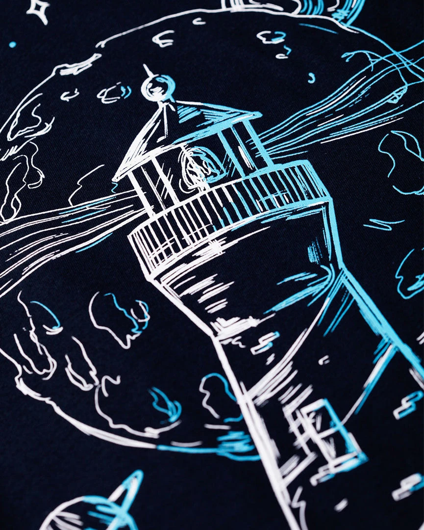 From Picard to Skywalker, weary galactic travelers need a beacon among the stars for a quick pit stop. Sure this lighthouse doesn’t look like it belongs up there, but who’s to say it can’t get the job done? With our original Lookout design on a premium ultra-soft men’s navy tank, you’ll be the one to decide.