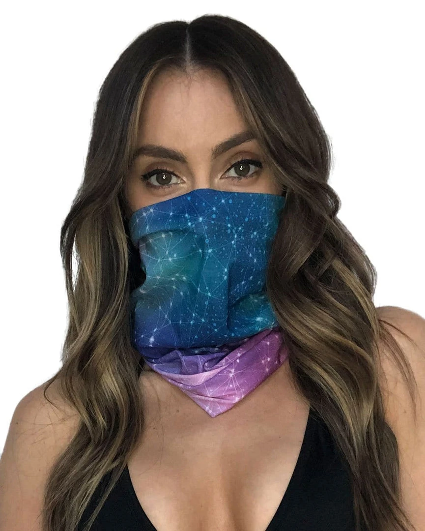 The Constellations Seamless Mask Bandana is a multi-functional face-covering that slides easily over your head to cover your neck, mouth, and nose. It can also be worn as a headband, wristband, hair tie, and more!