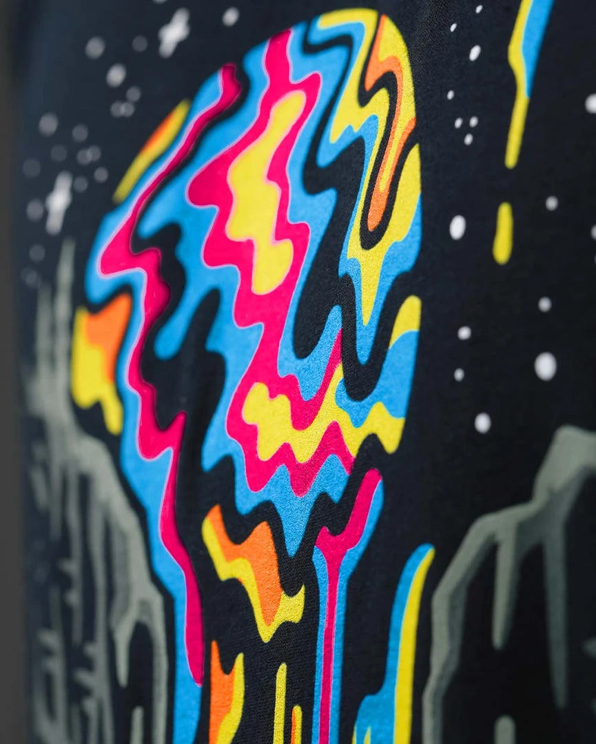 Far away in the depths of the Universe, a group of rare Technicolored planets adorn the sky. It’s a place where matter, time, and space defy understanding, these planets unleash innumerable hues that melt and slather the cosmic landscape, birthing new worlds with each drip of color. The Galaxy is a great big canvas, overflowing with creativity and life. May this remind us, to douse our own little worlds in the colors of our love and self through uninhibited expressionโbecause life Is too short to be dull.