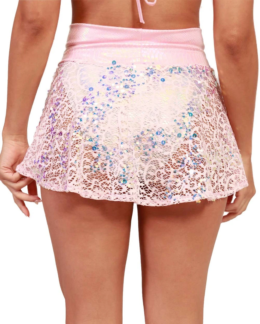 Our J. Valentine x iHR Slice of Heaven Sequin Skirt is a statement-maker beyond ur wildest dreams. This skirt is made from a flowy material with a sequin print that glistens like the morning sky. Wear it with its matching ultra crop top and bikini top for an unforgettably fabulous look.