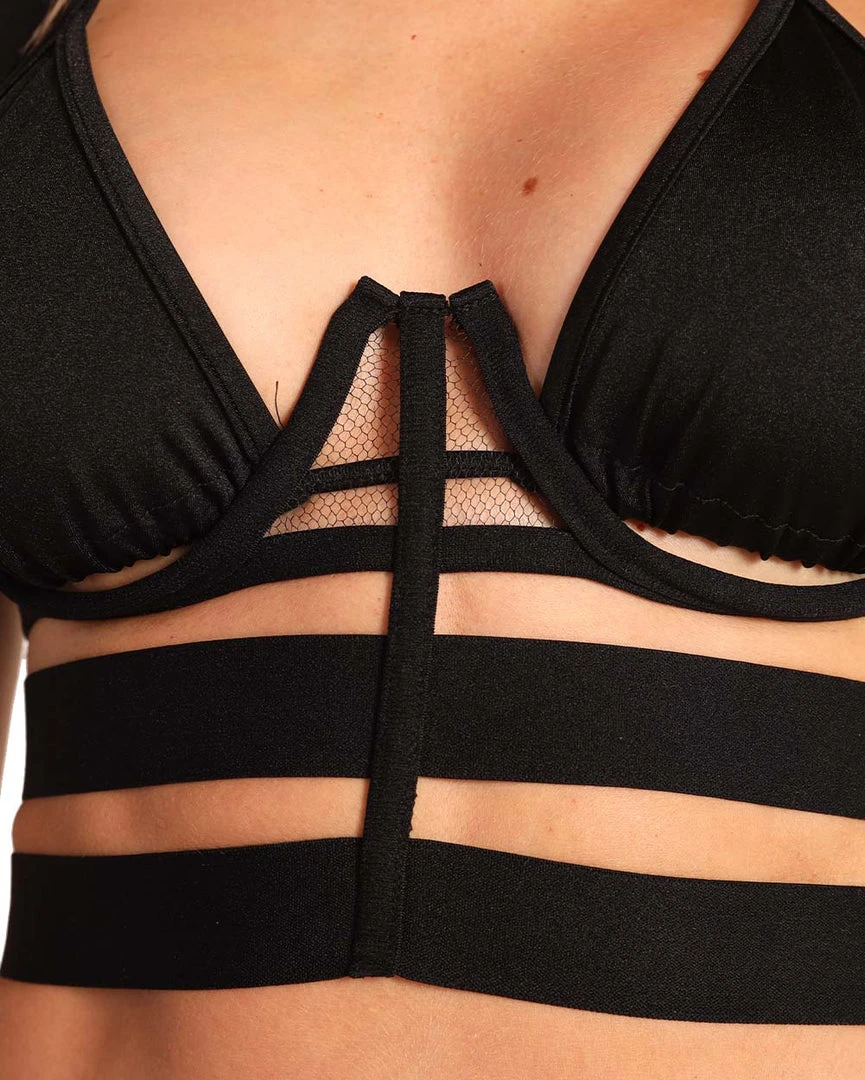 Leave them breathless with our Barely There Elastic Harness Top. This corset top features structured boning, mesh detailing, and an underwire bust support.