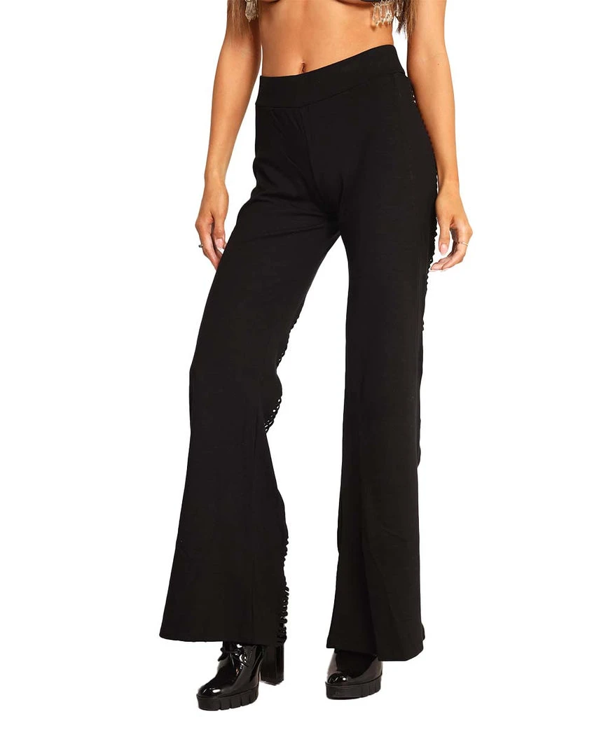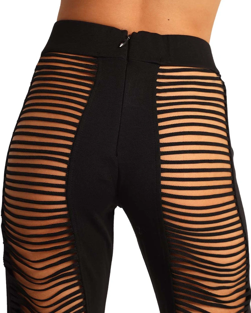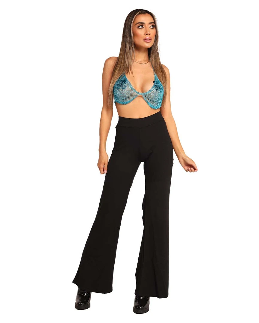 They’d want to get to know u when they see u walking around in our Split Decision Cutout Pants. These bell bottoms are made from a stretchy material with a mesh design and high-waist cut.