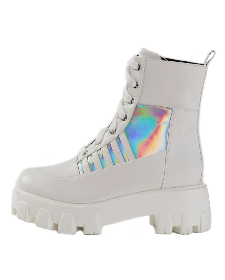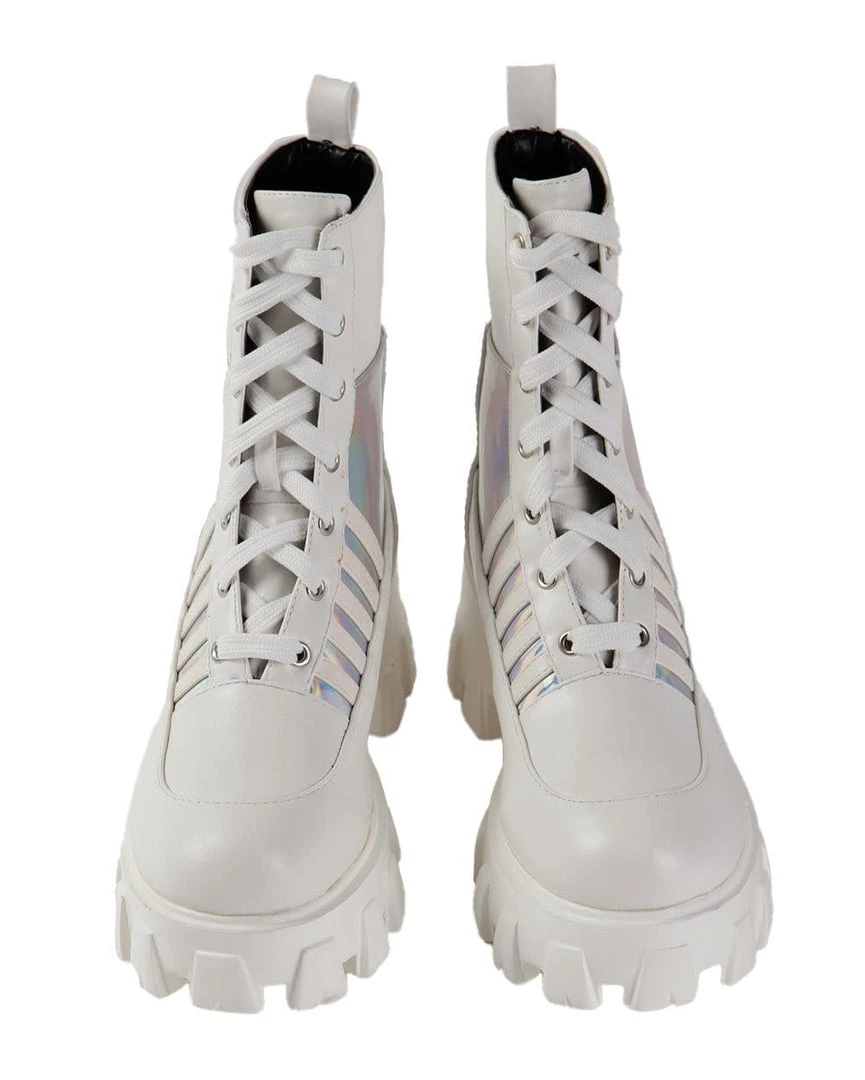 Our Euphoria Magic Holo Combat Boots will give ’em something to stare at. Stunt on ’em in these badass ankle-length booties have thick traded sole, side paneling, and adjustable lace-up closure.