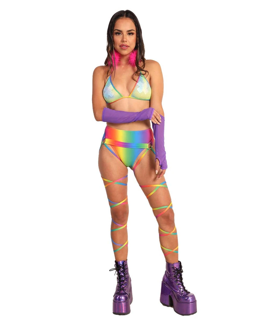 Why chase the rainbow when u can be the rainbow with our Roma Happy Pride Pair of Rainbow Leg Wraps? These leg accessories feature a gorgeous rainbow ombre print – the perfect finishing touch to ur Pride fit.