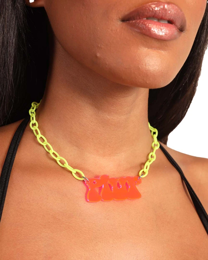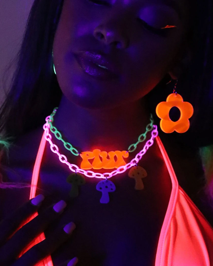 Live ur life by spreading peace, love, unity, and respect with our Nomad Kandi Plur Choker. This necklace is every neon lover’s dream as it features neon yellow chunky chains and an acrylic pendant that reads PLUR.