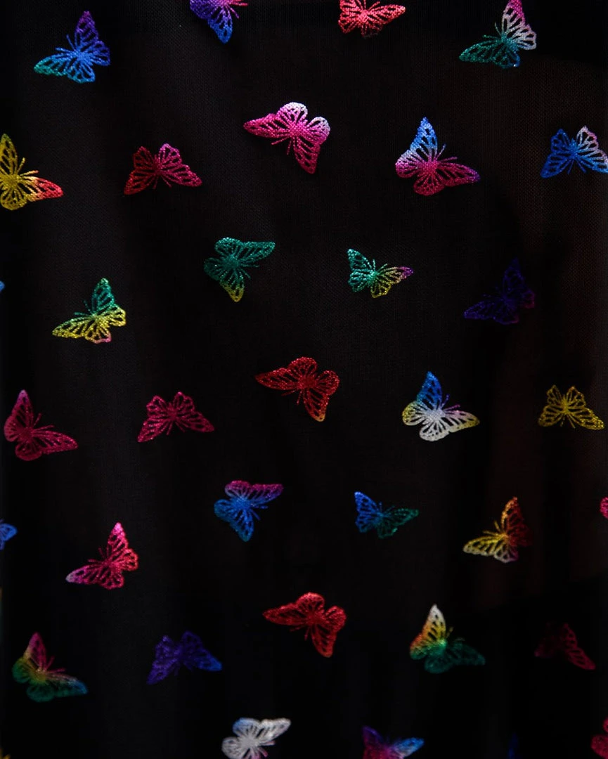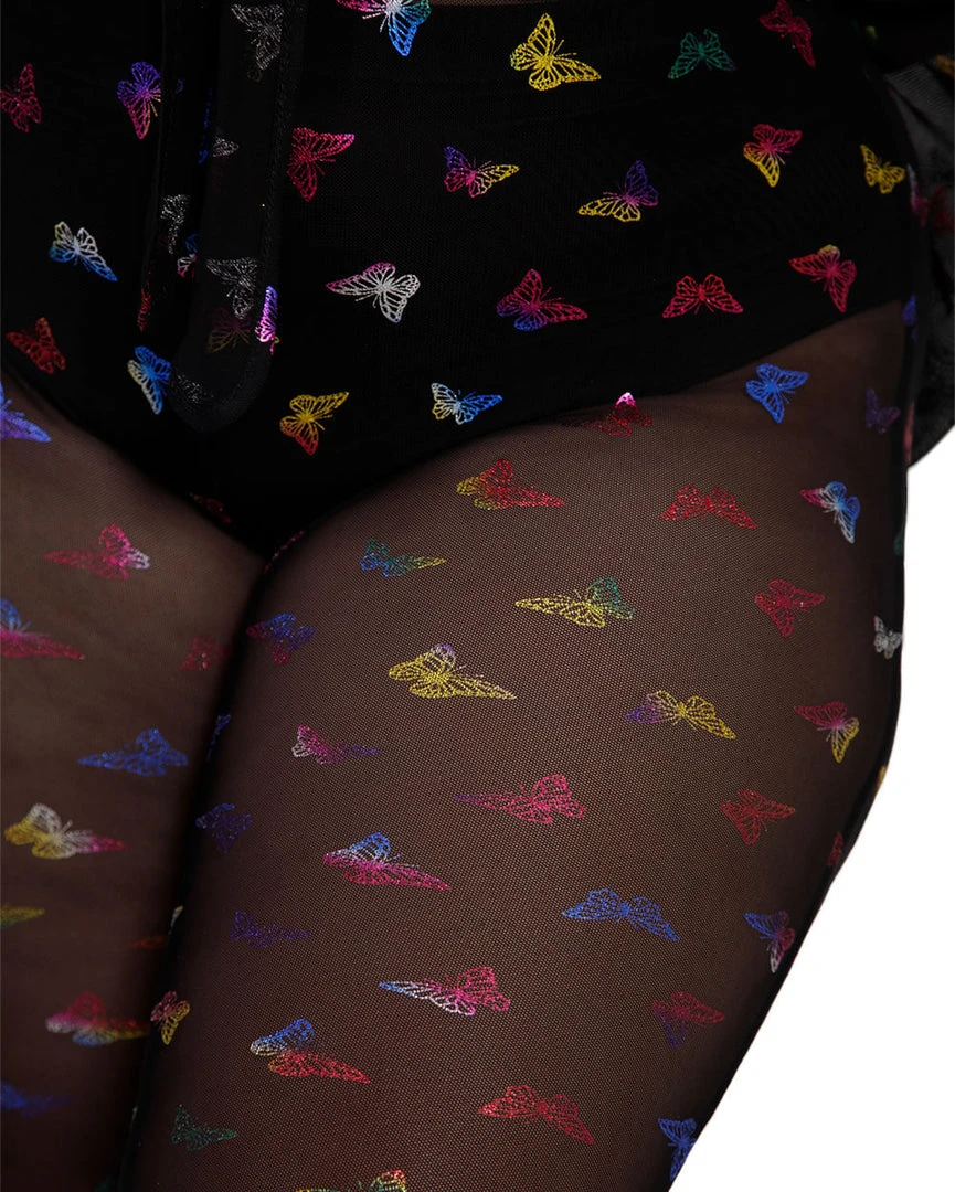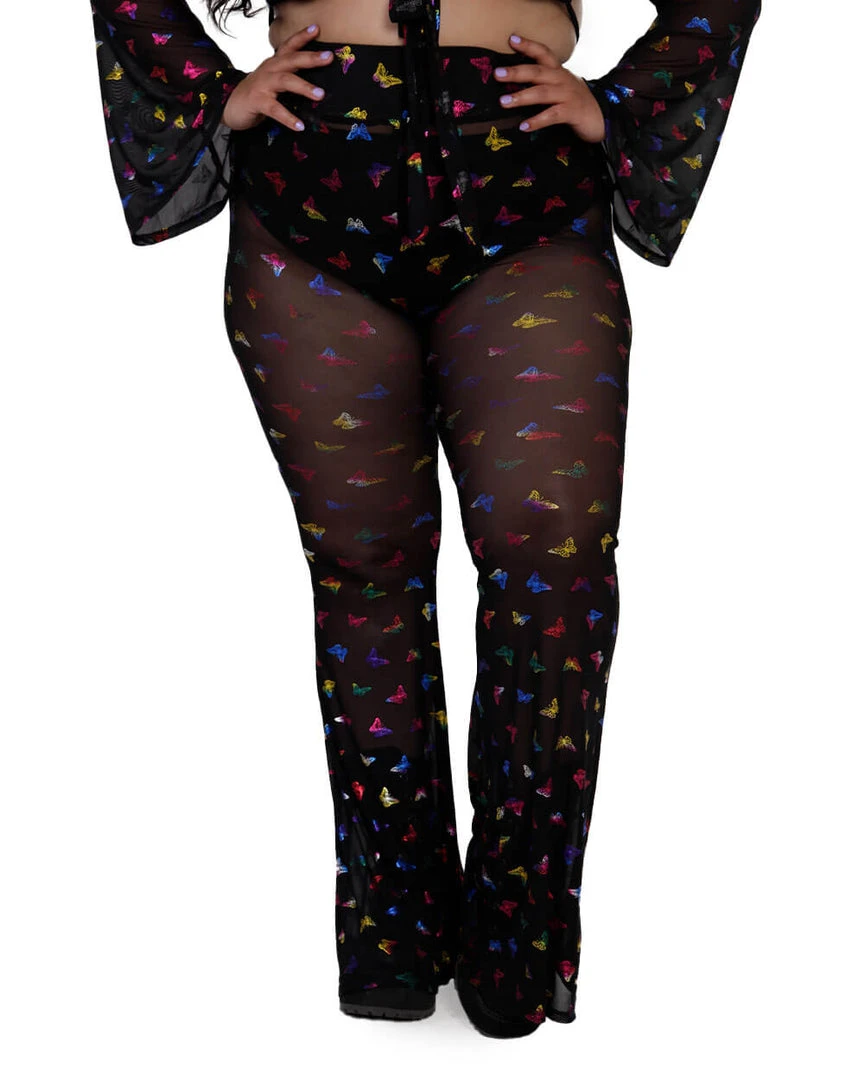 The BB Ur So Fly Mesh Bottoms will have u ready to get down tonight. These mesh pants flare at the bottom and feature a high-waist design and colorful butterfly graphics all over.