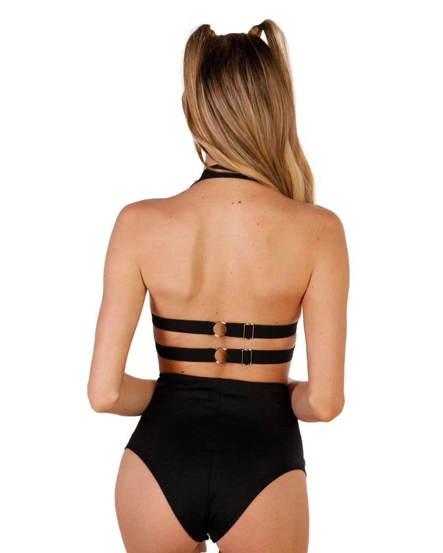 You’re an angel with an attitude in our Give It To Me Bondage Halter. You get what you want in this sassy black bikini top that features an o-ring detail, strappy detailing, and adjustable back straps.
