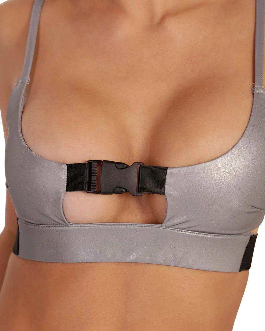 Our Xtra Bright Reflective Speed Clasp Top is here to light up ur world. It has a scoop neckline that accentuates ur curves, a keyhole cutout, speed clasp detailing, and is finished off with a reflective effect.