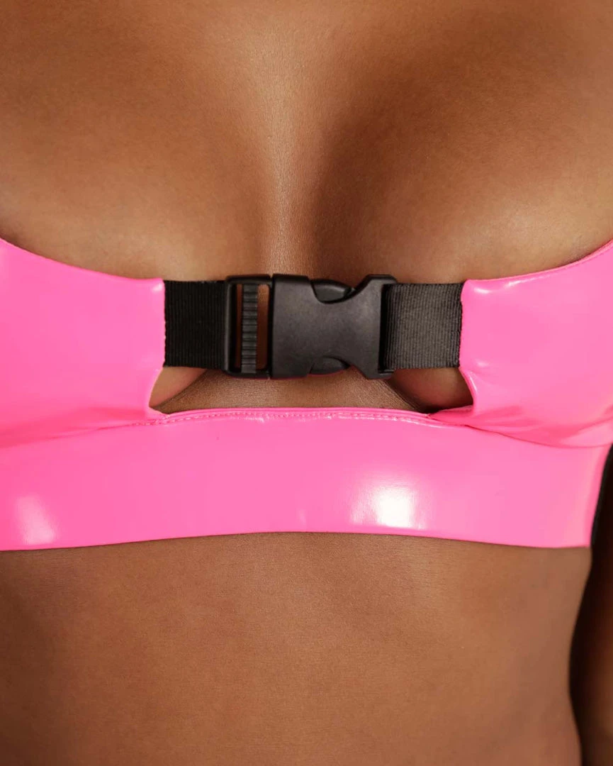Get that killer look with theย It’s My World Vinyl Underboob Clasp Top. This vinyl top features a square neckline, skinny straps, an underboob cutout, and a speed clasp closure.ย