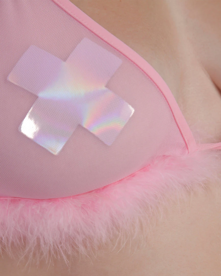 Look fabulously flirty in our Keepin’ It Cute & Fluffy Triangle Top. This black bralette features skinny straps, triangle cups, and faux fur detailing making it look adorable AF.