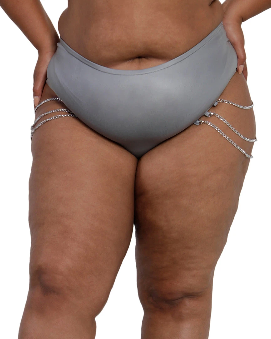 You’ll charge up the dancefloor with the Set Me Free Reflective Booty Shorts. These high-waisted bottoms are highly reflective and feature a three-layer chain accent on the sides.