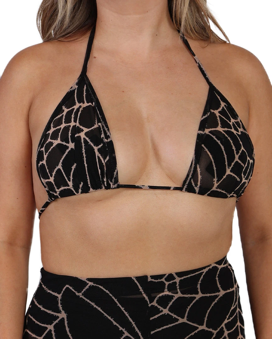 Enjoy a spectacular night of spooky vibes in the Face Ur Fears Spiderweb Bikini Top. This bralette top features a halter neckline and freaky-looking cobwebs all over.