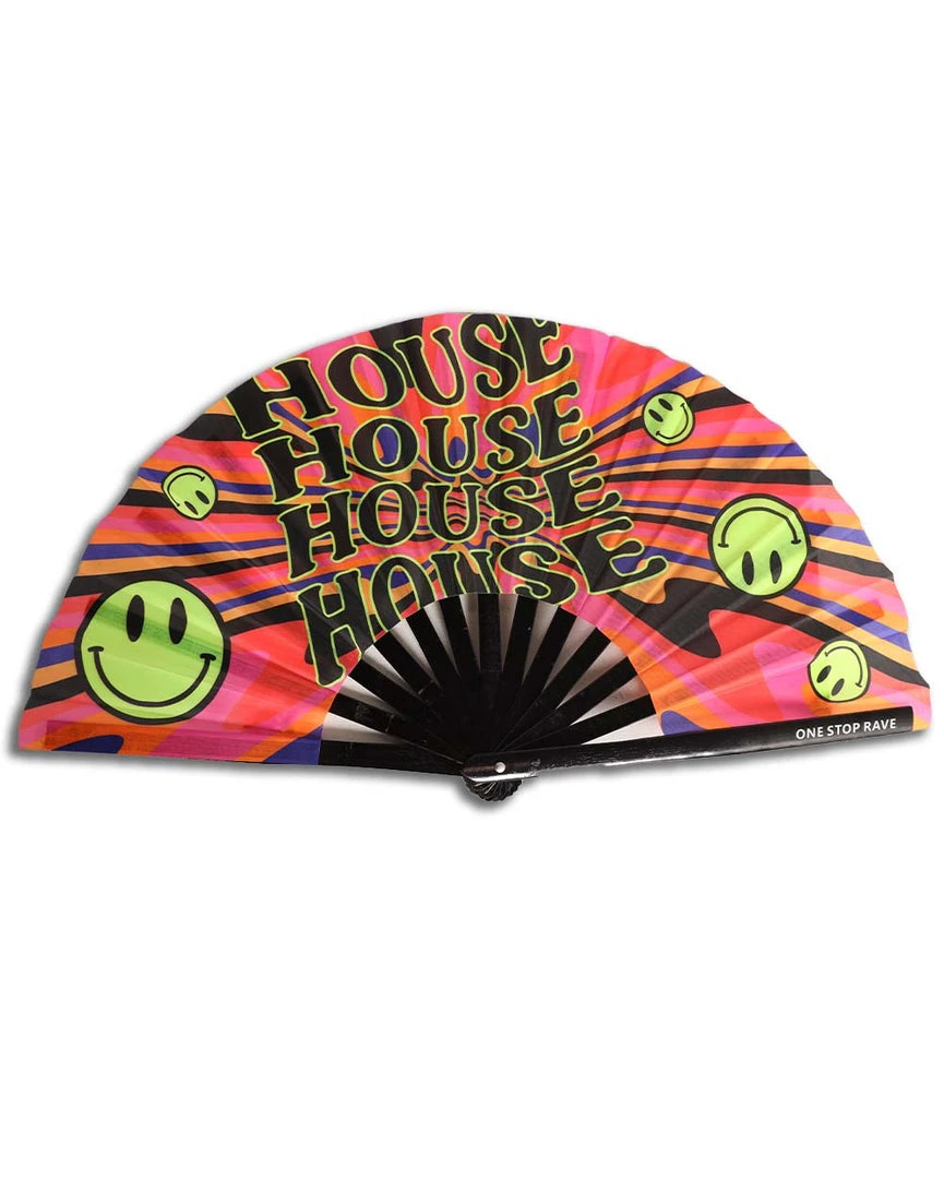 It’s house music all night long with the One Stop Rave House Head UV Hand Fan.