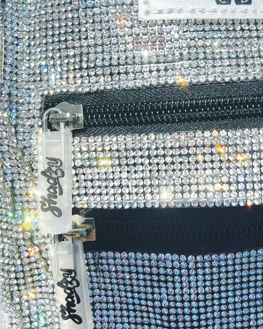 Ourย Blingin’ Hydration Backpack is ur new rave sidekick. It has a rhinestone-encrusted fabric that reflects the festival lights. It features one big compartment and two front pockets, spacious enough to keep all important belongings safe.