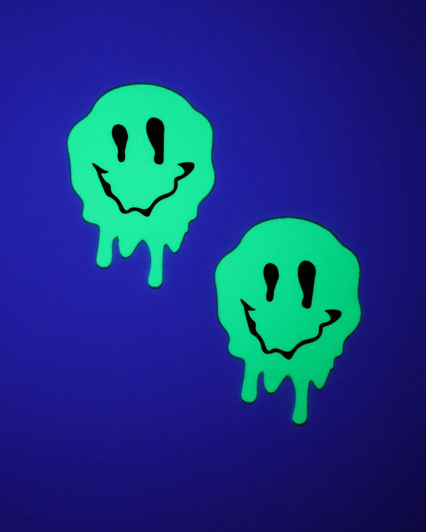 Complete ur techno look with the Neva Nude Neon Melty Smiley Pasties. These smileys are the ultimate accessory for ur upcoming rave event as they glow up brightly in the dark.
